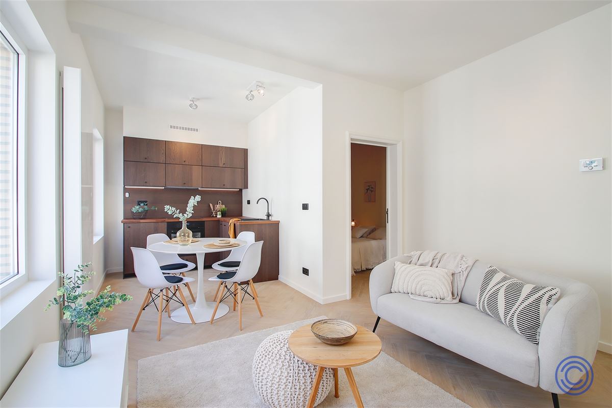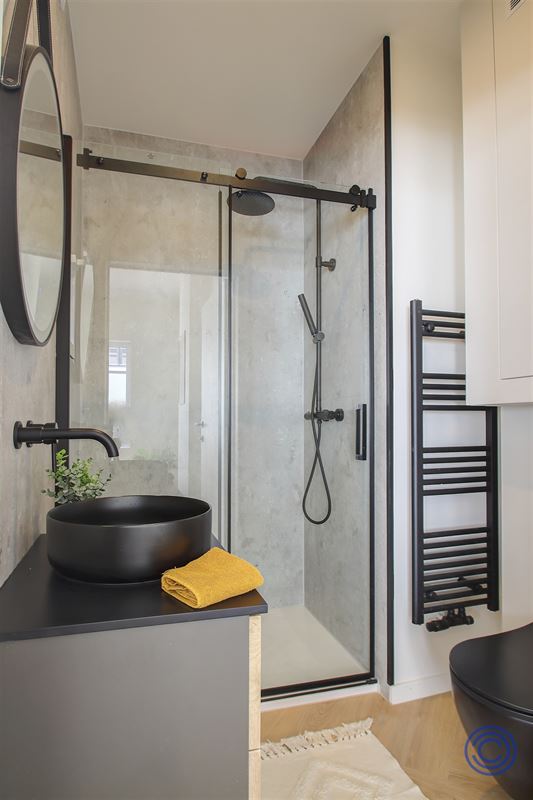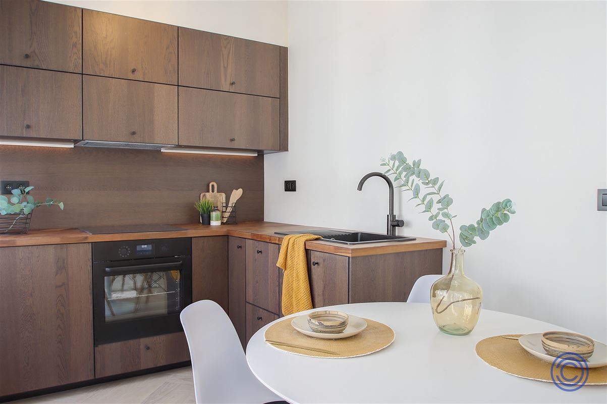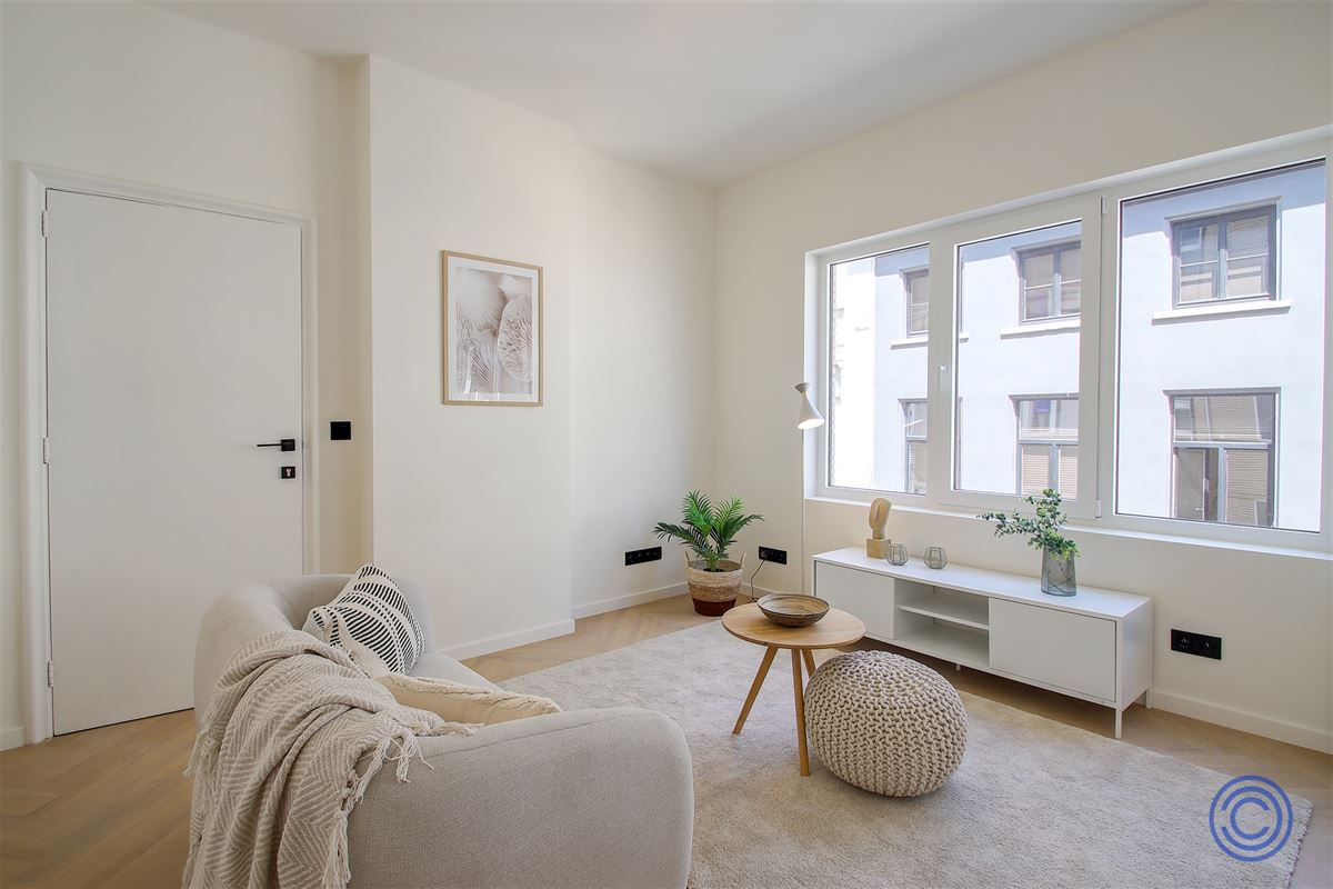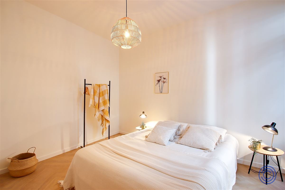 Welcome to this cozy 1-bedroom apartment, part of an apartment building consisting of 10 apartments completely renovated in 2025, whose ideal location makes it perfect for own occupation or as an investment property. You enter the living space where the large windows, light herringbone and high ceiling create a spacious feeling. The open kitchen in dark oak provides a nice accent and is equipped with a large oven, induction cooktop, range hood, refrigerator and matte black sink with bronze faucet. At the rear of the apartment is the spacious bedroom of about 14m². The cozy bathroom is equipped with a rain shower, sink unit, illuminated mirror and toilet. Attached to each apartment is a private basement storage room of approx. 3m², included in the purchase price. Furthermore, in the gem. basement there is a spacious bicycle storage room easily accessible from the entrance hall. Each apartment has a private electricity and gas meter, water consumption is through a collective meter and intermediate meters. The monthly costs are not yet known. Bids can start at 219.000 EUR.