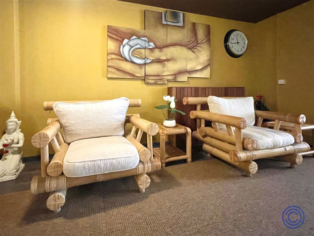 Today, the spaces behind are divided with false walls but can also be used as 1 unit. Adjacent at the back there is also a kitchen and a toilet with hand-washer.