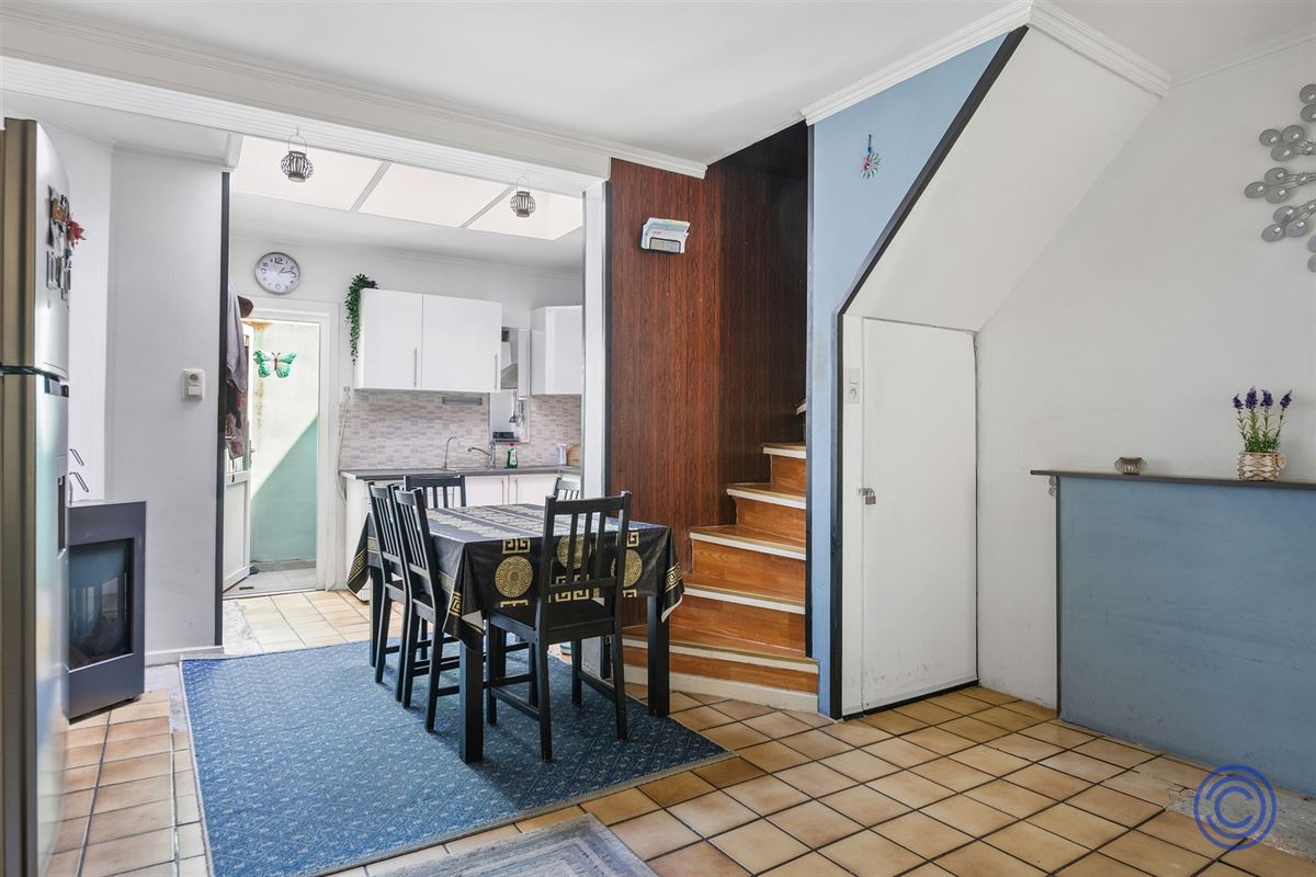 Maison mitoyenne confortable avec 2 chambres spacieuses située dans une rue verte et sans voiture à Oud-Berchem. Vous entrez dans un hall d'entrée séparé avec vestiaire, équipé d'un sol carrelé. Vous entrez ensuite dans l'espace de vie d'une superficie d'environ 41m² comprenant un salon et une salle à manger. Dans l'espace de vie, il y a actuellement un faux plafond. S'il est enlevé, les plafonds atteindront pas moins de 3,80 mètres. Cela donne une impression d'espace et de lumière ! Adjacente à l'espace de vie, une cuisine ouverte pratique est aménagée et équipée d'une plaque de cuisson au gaz avec hotte aspirante, d'un lave-vaisselle, d'un grand four et d'un évier. À l'arrière de la maison se trouve une petite cour d'environ 4 m². Il y a également des toilettes séparées avec un espace pour un sèche-linge et une machine à laver. Au premier étage se trouve la première chambre d'environ 16m² et la salle de bain équipée d'une baignoire, d'une douche, de toilettes et d'un grand meuble de salle de bain avec beaucoup d'espace de rangement. La chambre du premier étage dispose d'un escalier menant à la grande pièce mansardée de 25m². La propriété a actuellement un label EPC F, ce qui rend la rénovation obligatoire. Vous pouvez bénéficier de diverses aides et subventions pour améliorer l'efficacité énergétique de la propriété !